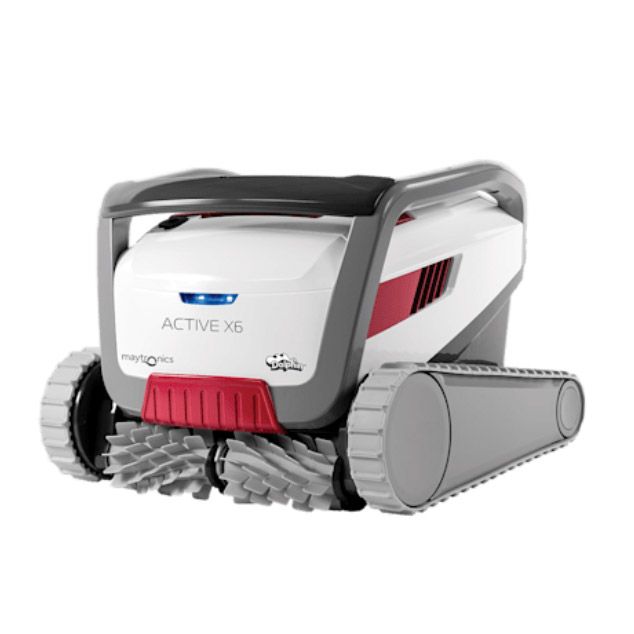 The Dolphin X6 is a premium robotic pool cleaner engineered for large residential pools that demand powerful, thorough cleaning. It covers the floor, walls, and waterline with precision, using CleverClean™ scanning with gyro navigation and the dynamic dual-drive PowerStream mobility system for full pool coverage. Equipped with all-terrain PVC brushes and an advanced dynamic active scrubber, the X6 tackles heavy debris, fine dirt, and stubborn algae with ease.